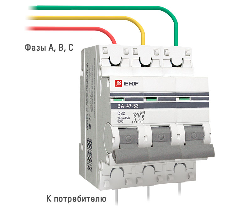 Ввод электричества в вашу квартиру/дом может быть выполнен 4-мя проводами. Один из этих проводов - «ноль», а остальные три — это три «фазы». Фазы между собой разные, и их не стоит принимать за одно и то же. Чаще всего разделение на три фазы нужно в случае большого количества возможных электроприемников. В этом случае, каждая фаза будет давать электричество для одной части дома, например ванной и кухни, ещё одна фаза будет питать комнаты, а третья будет использоваться, например, для освещения или мощных электроприборов. Именно при наличии 3-х фазного ввода для защиты на этом самом вводе используют выключатель трёхполюсный 3Р.